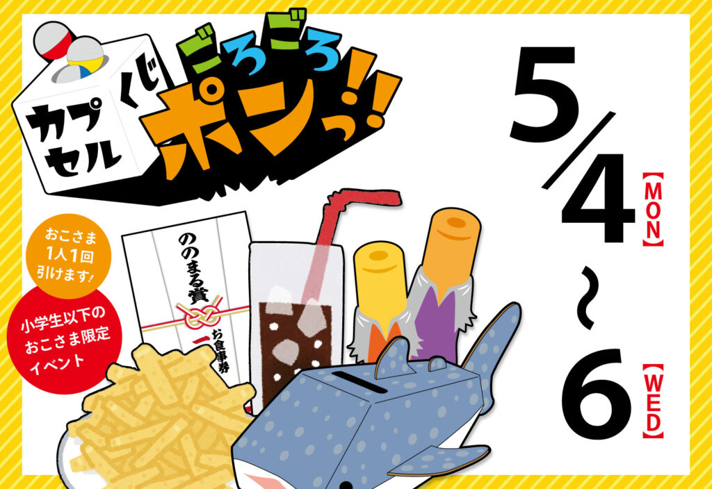 2026年ゴールデンウイーク後半はカプセルくじ♪連休の家族の思い出作りにご参加ください